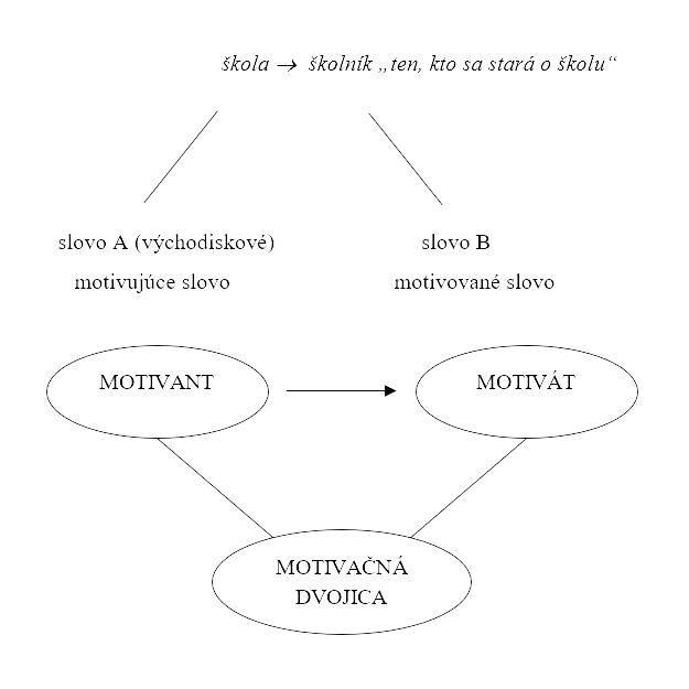 - uvedomovaný významovo-formálny vzťah medzi slovom A a slovom B, ktoré tvoria motivačnú dvojicu: